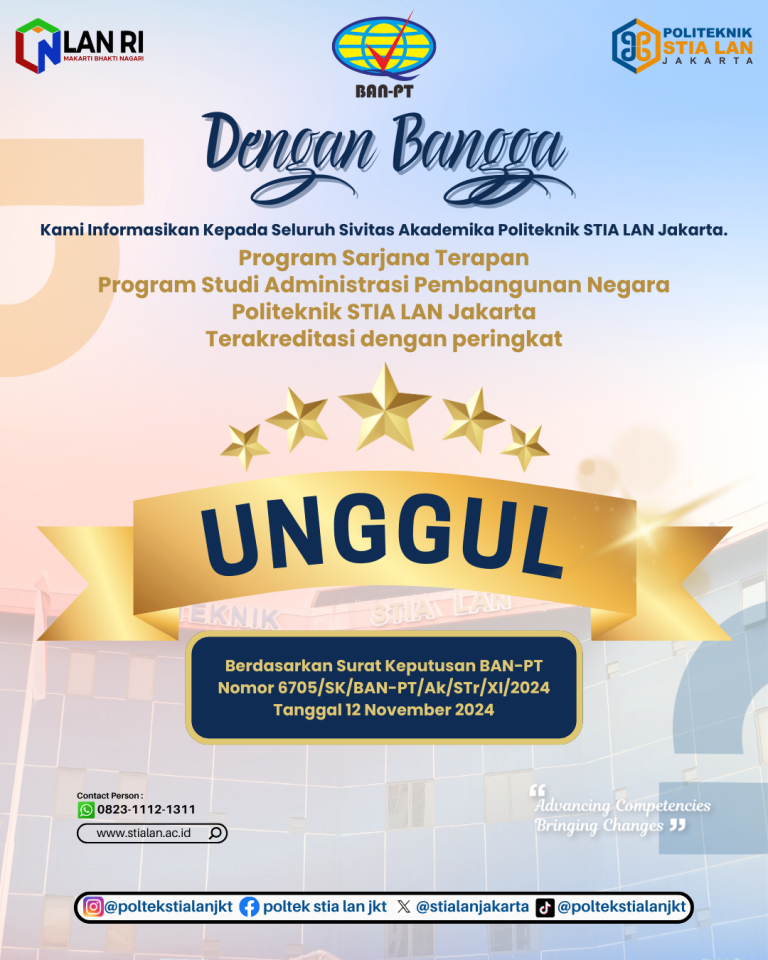 Kami informasikan kepada seluruh sivitas akademika Politeknik STIA LAN Jakarta.